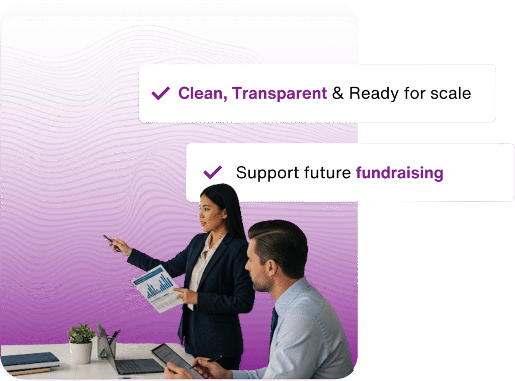 Keep your equity distribution clean, transparent, and ready for scale. We manage cap tables, model dilution, and support future fundraising with investor-grade accuracy.